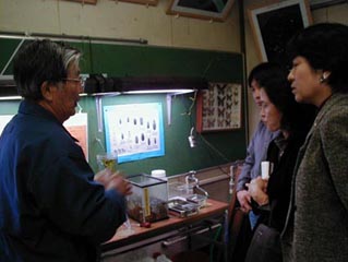 エコポリスセンター所長の野島氏より、環境保全や環境教育等、エコロジーの先端を行く板橋区の意気込みを語られ、環境庁による直接の予算援助やコンサルトも受けていることを話されました。次に、直接のホタル飼育担当の阿部宣男氏より、まず、人間が謙虚にホタルさんに来ていただけるような環境を作らなければならないことを力説されました。そして、緑化教育指導員の大平氏により、施設の説明を受けながら見学しました。