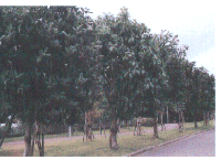 街路樹に適したタイワンモクゲンジ、ベンガルボダイジュ、テリハボク等の高木を食栽し緑陰を提供する