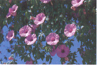 、マイソルヤハズカズラ、モミジバヒルガオ等のつる性植物をパーゴラやポールを使って植栽して