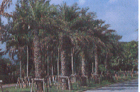 潮風害に強いナツメヤシ、ビンロウジュ、ヤエヤマヤシ等のヤシ類を植栽しています。